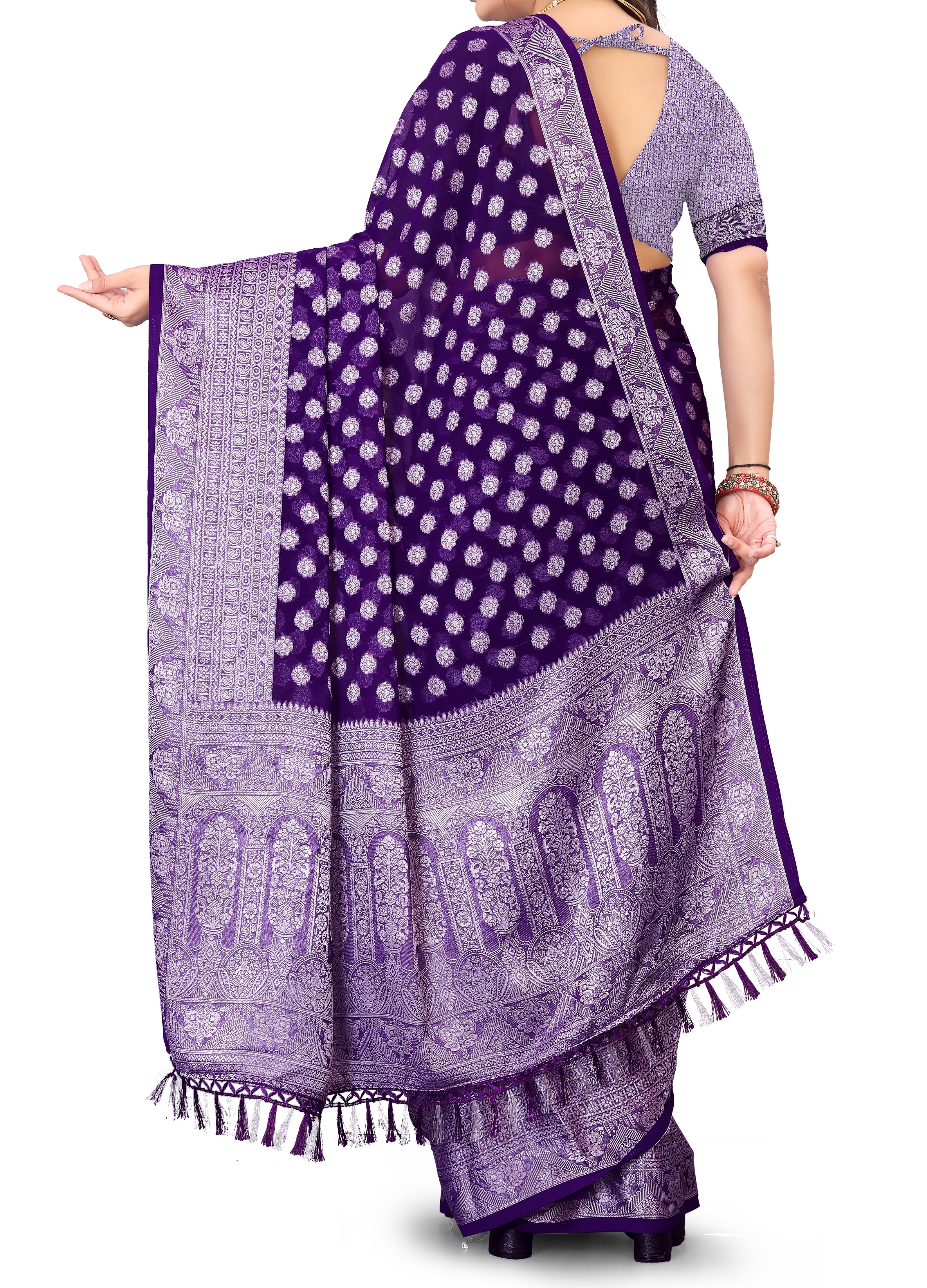 The Aarohi Saree: Violet Soft Silk Jacquard Buti Saree